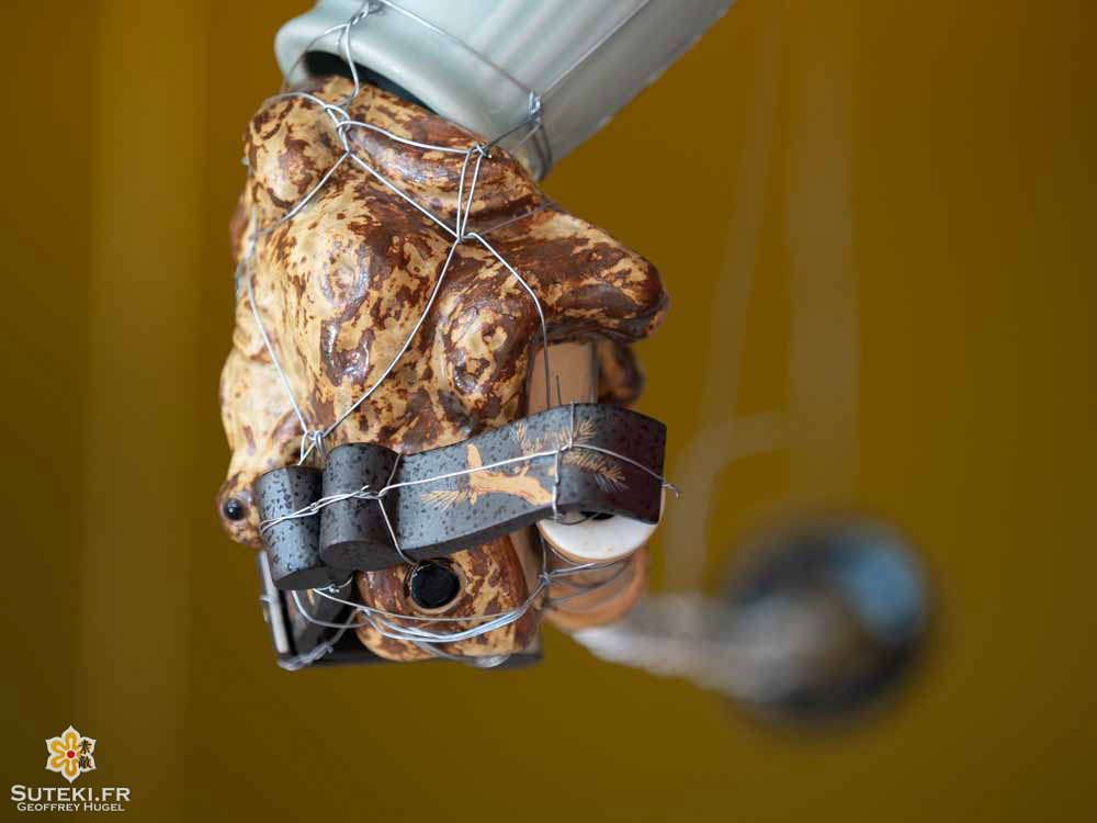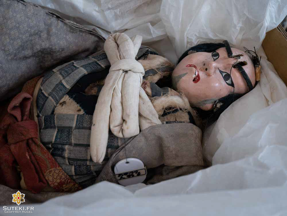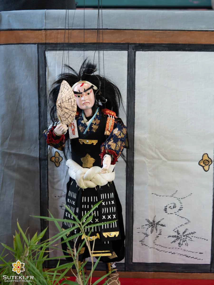 Nous avons pu assister ensuite à des répétitions de spectacle de marionnettes traditionnelles, avec un conteur et une joueuse de shamisen en accompagnement. David et moi avons même pu manipuler ces personnages quelques instants, en total free-style ! Nous avons également eu le privilège de voir deux anciennes marionnettes, de 100 ans d’âge, dont le fameux samouraï auquel j’ai donné vie précédemment !