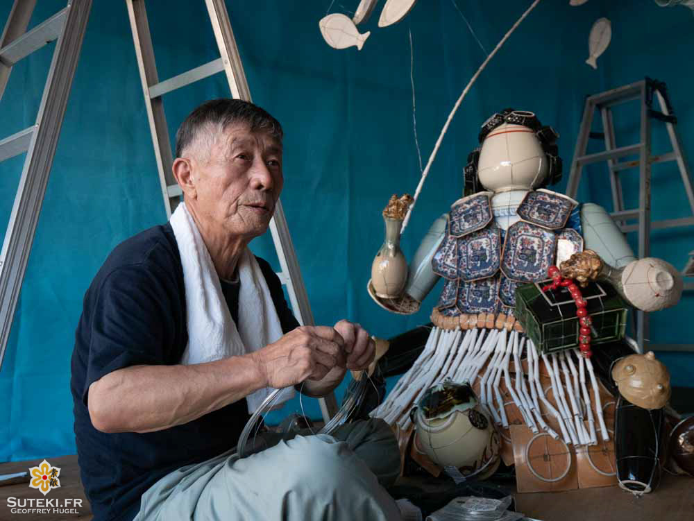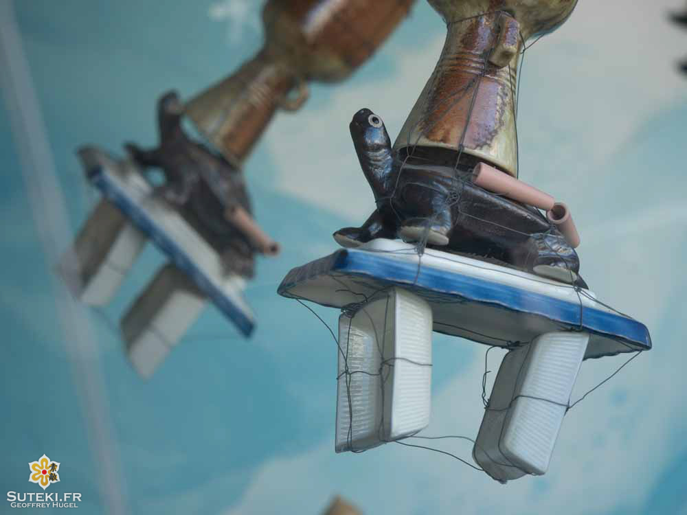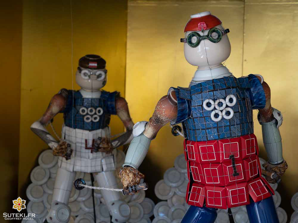 Après avoir rejoins David, ainsi que Tomoko-san et Sota-san qui nous accompagneront durant ces 3 jours, le marathon peut commencer avec la rencontre de Kanou-san qui créé de drôles de personnages, à taille humaine, uniquement composés de vaisselle et de fils de fers !! Ils égaieront pendant quelques temps les vitrines des magasins aux alentours avant d’être démantelés, puisque la vaisselle pourra être réutilisée !!