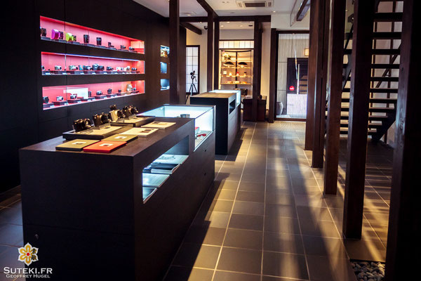 La boutique se trouve dans la rue principale Hanamikoji, en face du Gion Corner, le théâtre de geisha du quartier.