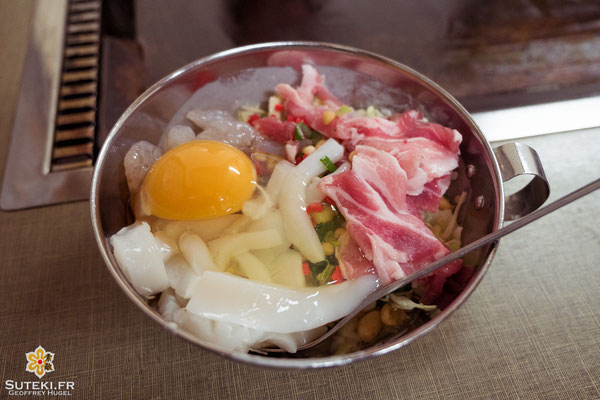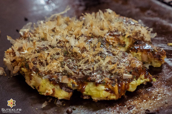 Petit détour à quelques stations de train pour aller se remplir l’estomac avec un très bon Okonomiyaki (galette de légumes, spécialité d’Osaka) à faire nous même. Angelo m’explique comment les gens d’Osaka le découpent et le mangent et je découvre qu’il est également possible d’y ajouter de la moutarde. Un peu trop relevé pour moi, je me contenterai de la version standard 😉