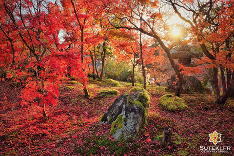 Mais en 2015, j’ai enfin eu l’impression d’avoir vraiment profité pleinement d’une saison (les momiji si vous suivez bien). Même si l’automne était plus doux que d’ordinaire et que les couleurs se sont clairement fait attendre, j’étais souvent dehors pour chasser de la feuille rouge. Que ce soit à titre personnel ou durant les Kyoto Safaris, je me suis rendu dans pas mal d’endroits de Kyoto pour immortaliser ces jolies scènes automnales. Si la saison a été tardive et globalement décevante, ma visite au temple Eikan-do a été le point culminant et m’a permis de me dire que j’avais enfin eu ce que je voulais cette année (« après avoir vu ça, je crois qu’on peut mourir tranquille, enfin le plus tard possible » un truc du genre). Des érables d’un rouge flamboyant partout, un étang, des petits jardins, une belle vue sur la ville, non vraiment, c’était pas loin d’être parfait. Après ça, j’ai continué à visiter d’autres sites mais ils n’étaient clairement pas à la hauteur, du moins pas cette année.